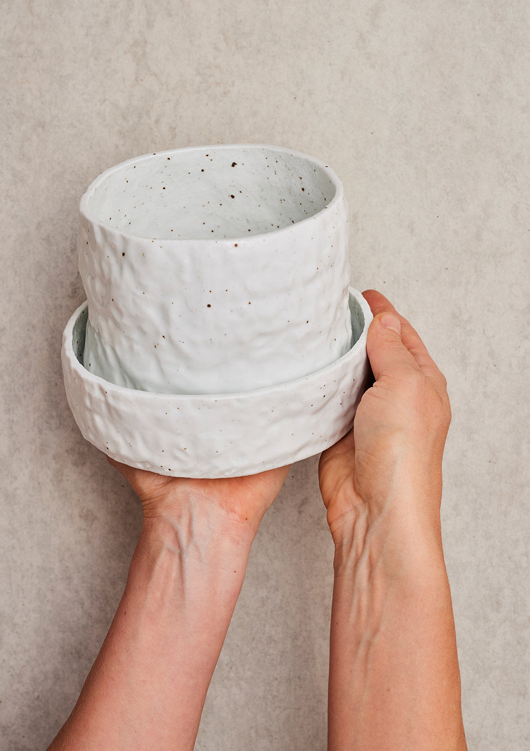 Speckled White Crackle Organic Planter in by Angus & Celeste オーガニックプランター ホワイト